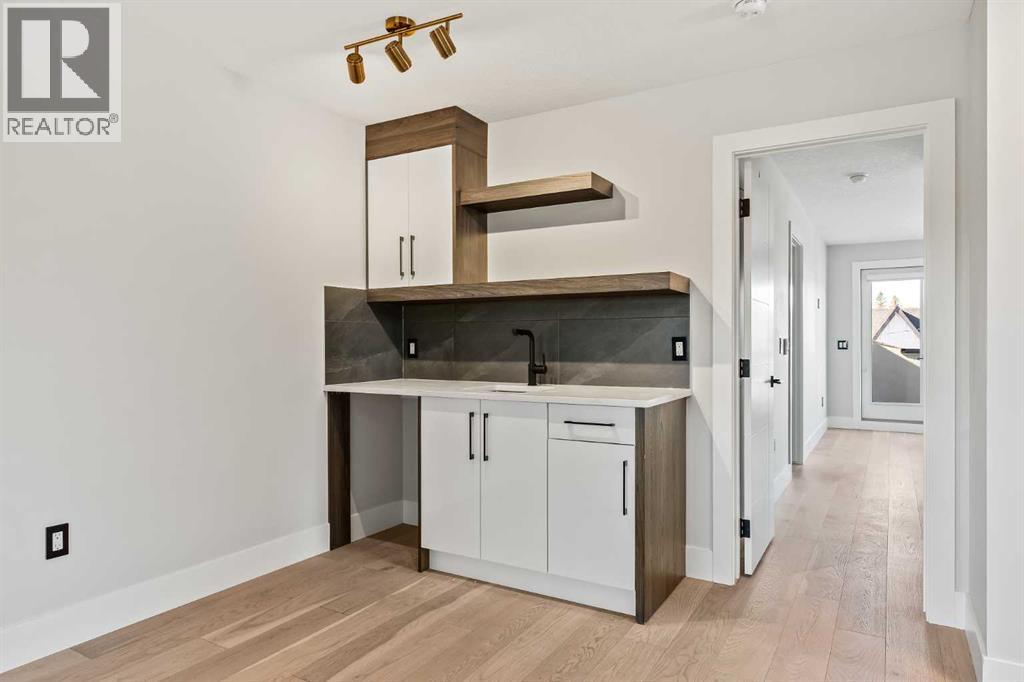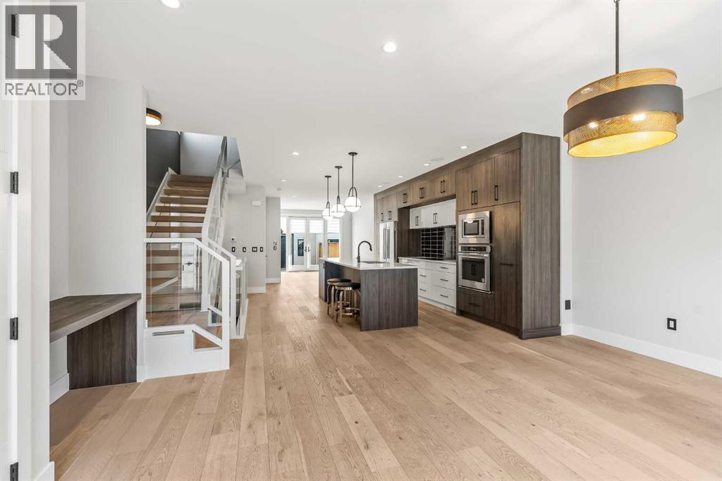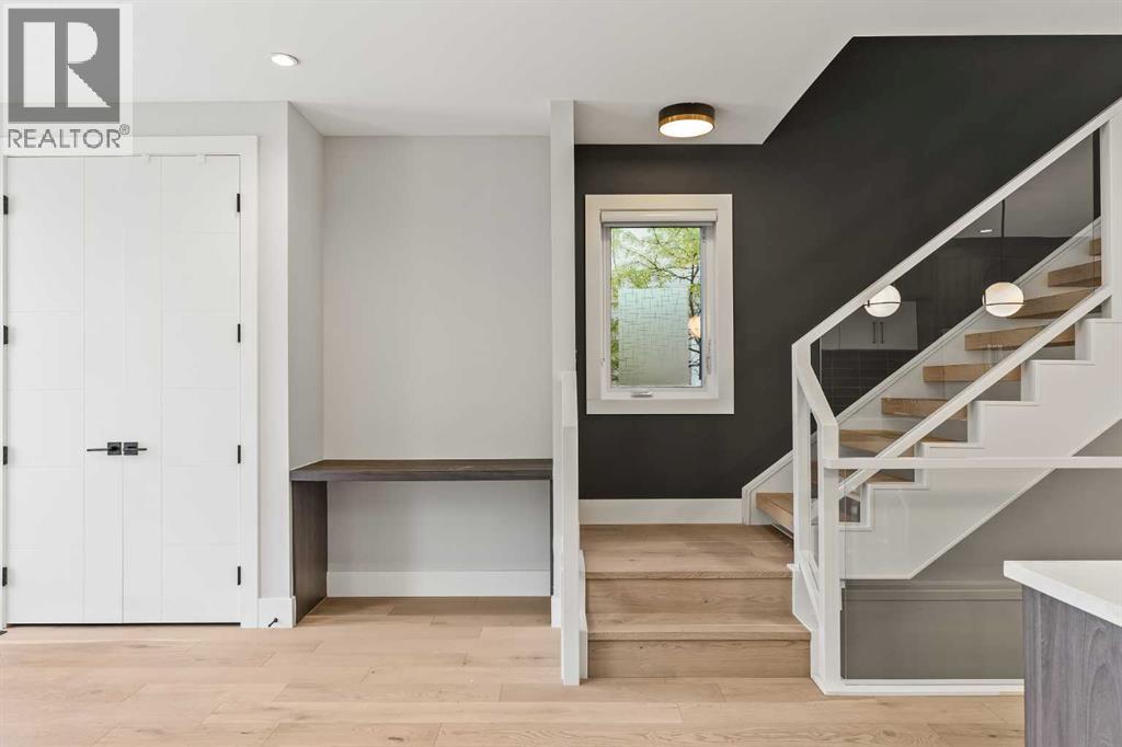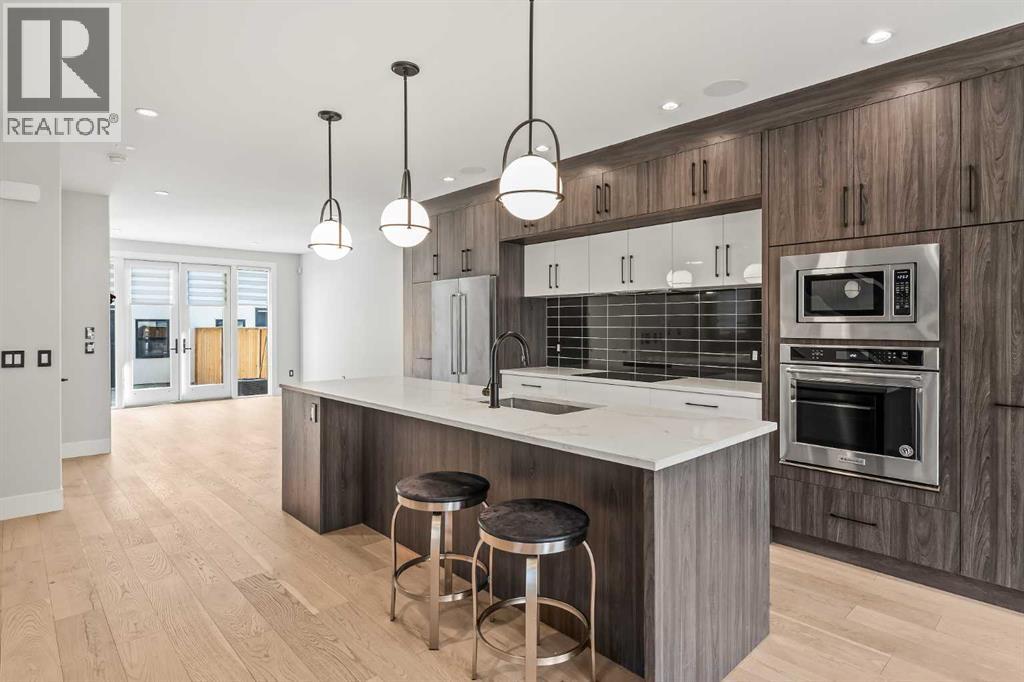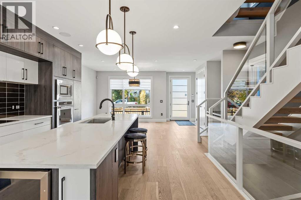 Proudly presenting 720 -15 St. NW. Wonderfully situated in the coveted community of Hillhurst, this 3,800 plus SF custom home presents like new while delivering an impressive list of upscale features including 5 bedrooms (2 primary bedrooms with ensuites), 5 bathrooms (2 steam showers), 2 laundry rooms, 2 fireplaces, a stunning open staircase & ELEVATOR! The bright main floor boasts a designer kitchen with extended cabinetry & pull-out pantry, stainless steel appliances with induction cooktop, beverage fridge, quartz countertops & a vast island with seating for 4. An oversized dining area easily accommodates large gatherings while the stylish living room with fireplace and glass doors opens seamlessly to the backyard. A chic powder room & practical mudroom with built-in storage complete this level. Upstairs, the striking open-riser staircase with glass panels leads to two full floors of hardwood-accented luxury living. The 2nd level is ideal for families offering two spacious secondary bedrooms with closet organizers & a beautifully upgraded 4-piece bath with heated floors. The 1st primary suite shares this level & is an excellent option for parents with young children. Featuring oversized windows, a custom walk-in closet & a spa-inspired ensuite with dual sink quartz vanity, freestanding tub, steam shower, & heated floors. A well-equipped laundry room with sink, quartz folding counter, & cabinetry adds convenience to this level. The 3rd floor is dedicated to refined living, highlighting a 2nd primary retreat with walk-in closet, lavish ensuite (dual quartz vanity, freestanding tub, steam shower, heated floors) & access to a sun-drenched private balcony overlooking the treetops. A spacious owner’s lounge with wet bar provides the perfect setting to relax, work from home, or enjoy quiet evenings. Completing this floor is a 2nd laundry room. The lower level brings family & friends together in a cozy family room with fireplace & a full wet bar with beverage fridge. A l arge 5th bedroom & 5th bathroom with heated floors round off this comfortable space. Other notable upgrades in this executive residence include a double insulated & drywalled garage with unique front & back doors allowing for additional parking, air conditioning, in-floor heating in ALL bathrooms, an elevator to age-in-place or accommodate multi-generational living, custom built-ins in ALL closet, a 75-gallon hot water tank, 200-amp electrical panel, built-in ceiling speakers & security system. Nestled just steps to parks, trendy restaurants, & the vibrant Kensington district, this luxury property offers a perfect balance of tranquillity & urban convenience. Its proximity to the Bow River, downtown, University of Calgary, SAIT & Foothills Hospital provides a remarkable location for work & play. With easy access to Memorial Drive & Crowchild Trail, this is a rare opportunity to own a magnificent property in one of Calgary’s most desirable neighbourhoods. (id:50315)